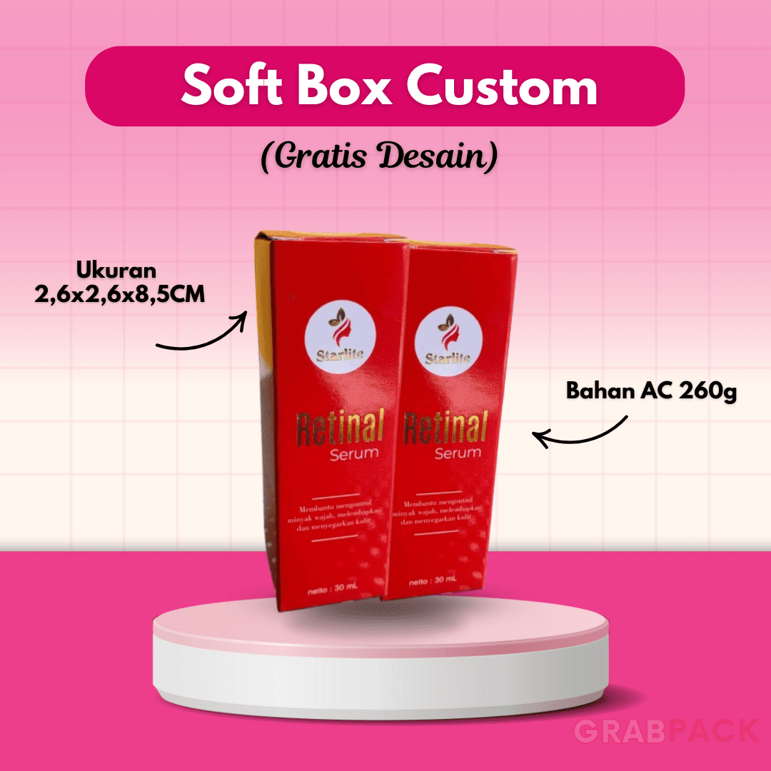 Softbox custom memiliki struktur yang fleksibel namun kuat, memungkinkan produk untuk tetap aman selama pengiriman atau penyimpanan. Desainnya yang kotak memudahkan kemasan ini untuk diproduksi dalam berbagai ukuran, sesuai dengan kebutuhan produk yang akan dibungkus.